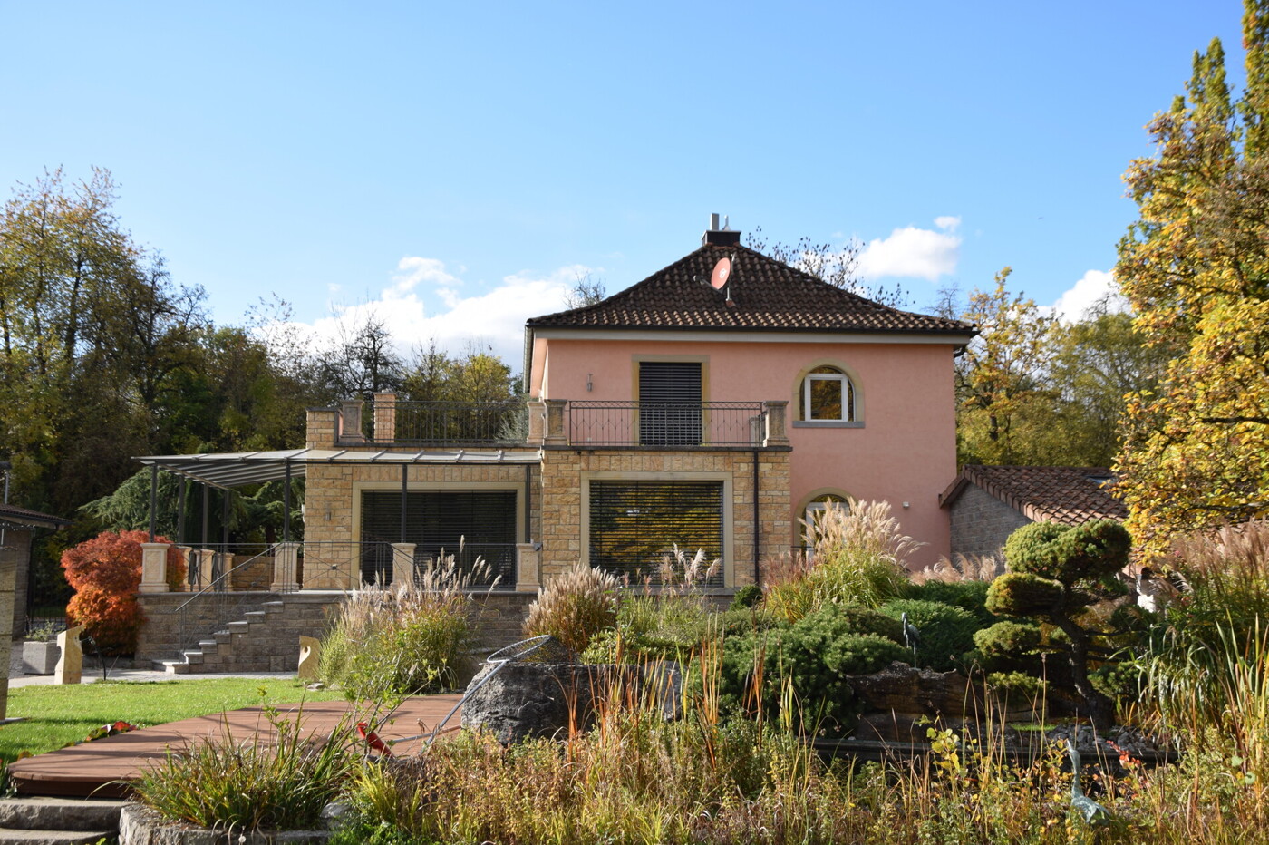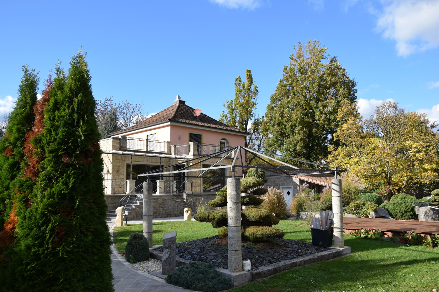 Willkommen in Kirchheim, wo dieses Paradies zum Kauf bereit steht. Diese besondere Immobilie aus dem Jahr 1931 wurde 2012/14 vollständig saniert und liebevoll erweitert. Das Wohnhaus bietet modernen Komfort und ein unvergleichliches Ambiente. Ein Juwel in ländlicher Idylle, stilvoll und aufwendig eingebettet in einem zauberhaft angelegten Garten.Auf einem großzügigen Grundstück von ca. 2.360 m² präsentiert sich dieses, in mediterraner Architektur, erbaute Haus mit einer Wohnfläche von ca. 179 m², und einer Gesamt-Nutzfläche von fast 400m². Highlight ist der idyllische Garten mit Schwimmteich, Zypressen, Pinien, und massiv gebautem Gartenhaus. Erleben Sie die fränkische Toskana. Es duftet nach Pinien und Rosmarin. Hier finden Sie den südlichen Flair, welchen Sie täglich genießen. Der Garten ist weit mehr als nur ein Stück Land - er ist Ihr grünes Wohnzimmer, ein Ort der Erholung, Geborgenheit und Inspiration. Er lebt, wächst und entwickelt sich mit den Jahreszeiten. Darin liegt die besondere Magie. Das mit Naturstein verkleidete Haus verfügt über fünf geschmackvoll gestaltete Zimmer, darunter zwei geräumige Schlafzimmer. Für ausreichend Privatsphäre und gehobenes Wohngefühl ist gesorgt. Ein elegantes großzügiges Badezimmer rundet das Innenangebot ab.