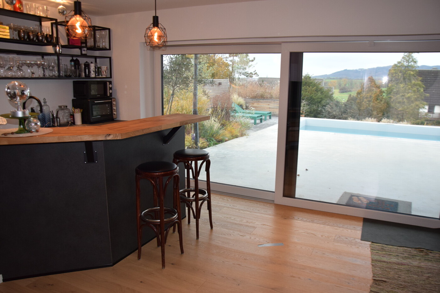 Der unverbaubare und weite Blick in die Fränkische Schweiz, verbunden mit der Ruhe und Stille sind der Grundstein für eine ausgewogene Work-Life Balance. Sie wohnen in einem im Jahr 2023/24 vollständig und kompromisslos sanierten Architekten-Haus mit einem Höchstmaß an Luxus und hochwertiger Ausstattung. Die Immobilie überzeugt durch außergewöhnliche Architektur, klare Linienführung, innovative Materialien und großzügige Grundrisse. Die Kombination aus moderner Baukunst und durchdachter Raumgestaltung schafft ein Wohnumfeld, das ästhetisch und komfortabel zugleich ist. Höchste Ansprüche werden zum Beispiel durch den exklusiven Heizkamin, oder beheiztem mit Turbinen-Gegenstromanlage ausgestatteten Swimmingpool erfüllt, ebenso durch die verwendeten Materialien. Exquisites Design und Funktionalität findet sich im ganzen Objekt. Im Gegensatz zu meist doch enger bebauten Grundstücken liegt diese Immobilie auf einem stattlichen Anwesen mit ca.2.000 m² in Erbbaurecht mit einem Jahreszins in Höhe von 2.0313,16 €. Ein zweites unbebautes Grundstück mit 810 m² wäre zusätzlich zu erwerben.Lage