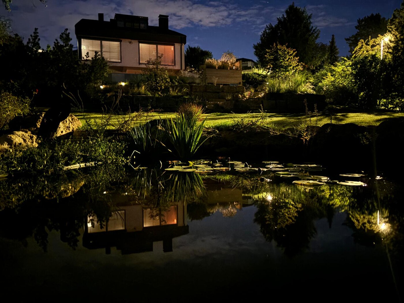 Die neu sanierte luxuriöse Immobilie zeichnet sich durch eine Ausstattung aus, die weit über den Standard hinausgeht. Dazu gehören edle Bodenbeläge, elegante Sanitärinstallationen, Designküche und stimmige Lichtkonzepte ebenso wie vernetzte Haustechnik und ein traumhafter Garten mit Teich.- nahezu Erstbezug nach Total-Sanierung